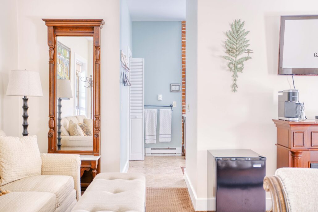 The Estey Suite is located on the 2nd floor. The large room has a couch for additional seating.